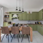 Det finns matplats och utomhusmatplats, tillsammans med vattenkokare, kylskåp och köksredskap.